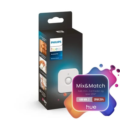 *Tilbuddet gælder 9 marts 2026 til 22 marts 2026 ved køb af min. 2 Philips Hue varer med Mix&Match badget på varen. Rabatten fratrækkes automatisk i kurven