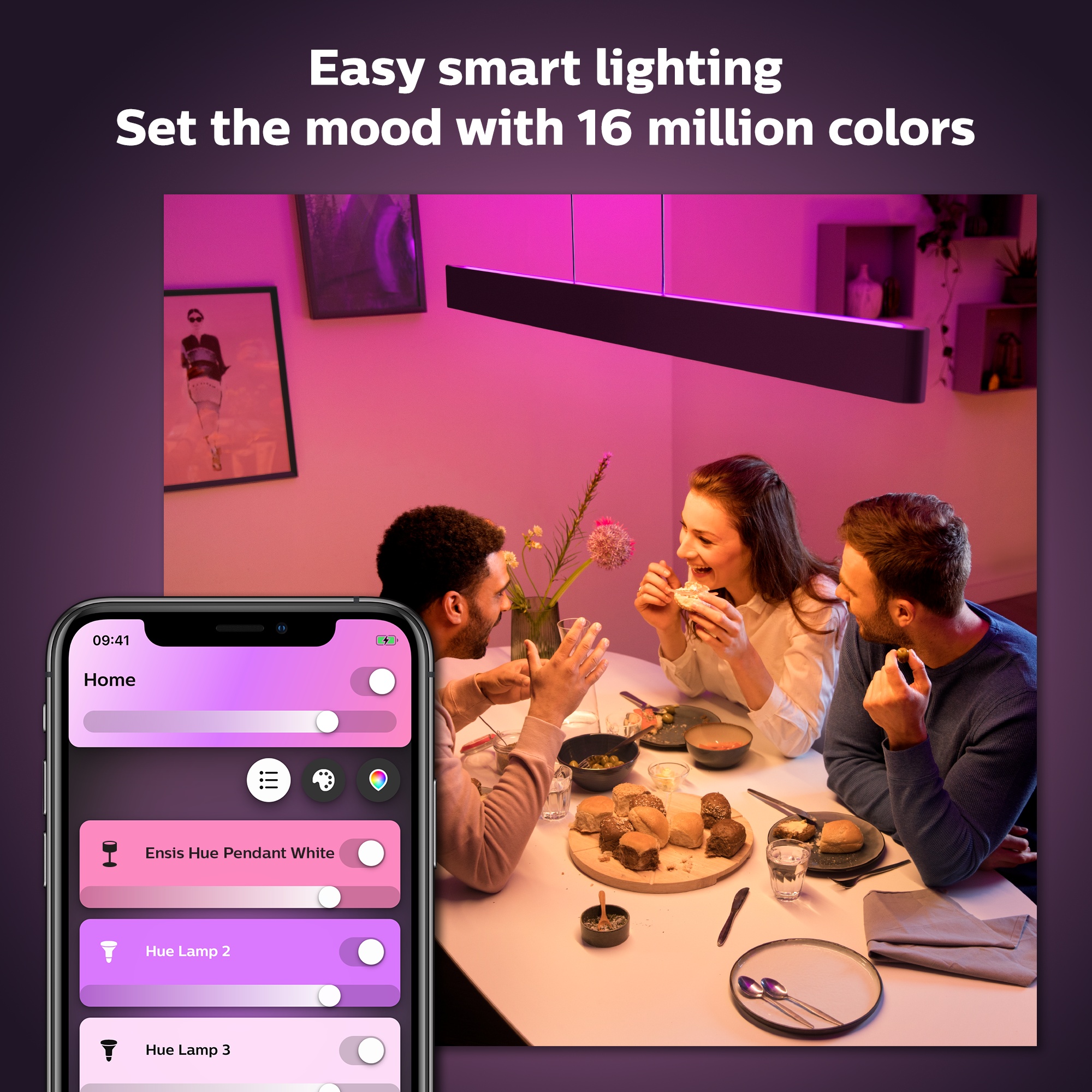 Philips Hue Ensis pendel i sort. Intelligent belysning med farvet og hvidt lys (2000-6500 Hue White Color Ambiance). Zigbee og Bluetooth.