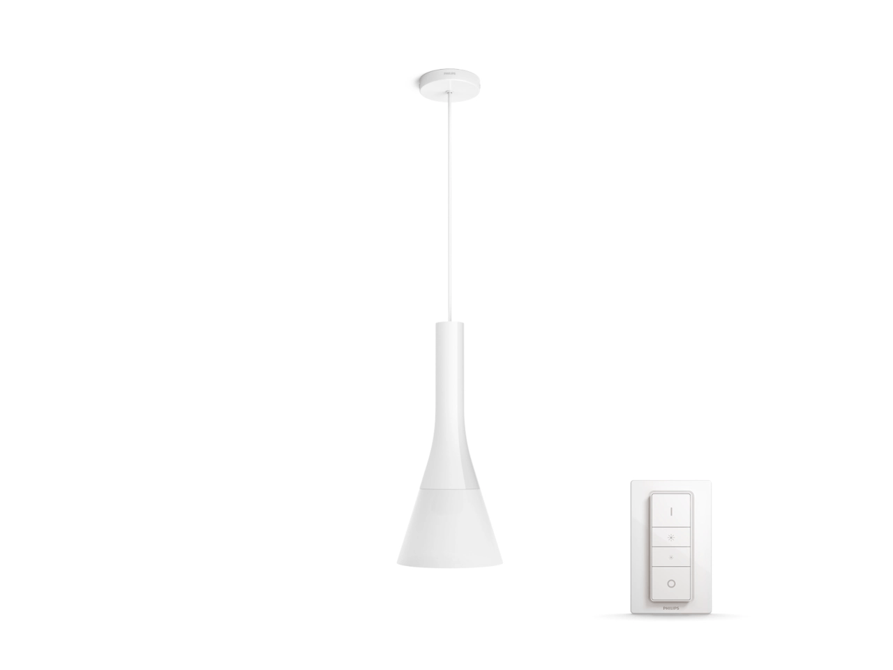 Med den batteridrevne Hue Dimmer Switch til Philips Hue kan du nemt styre dine White Ambiance lyskilder. Du kan skifte mellem de 4 forskellige lystemaer ved blot at trykke på knappen, dæmpe eller øge lysniveauet og nyde brugervenligheden. Den trådløse Hue Dimmer Switch kan placeres hvor som helst i sin lille og elegante dock. Brug den som fjernbetjening eller som lyskontakt på væggen, og nyd den rette belysning til alle dagens øjeblikke. Du kan tilføje op til 10 Hue lyskilder til en Hue Dimmer Switch.