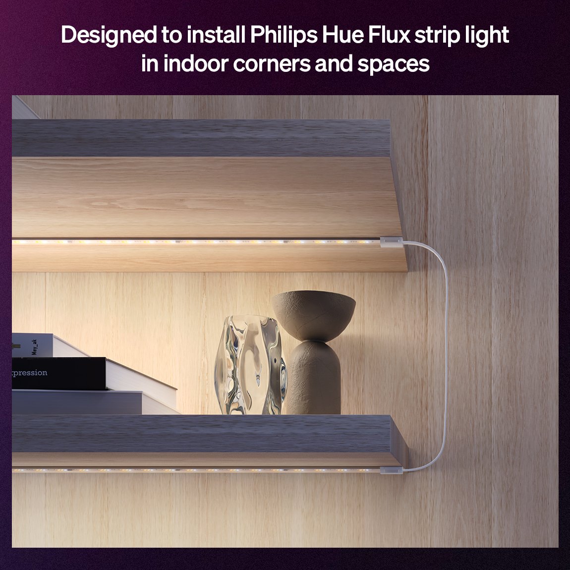 Denne flex connector er designet til at udvide dit Hue Flux system. Med denne connector kan du nemt og hurtigt forbinde forskellige elementer i dit lyssystem og skabe den ønskede belysning.