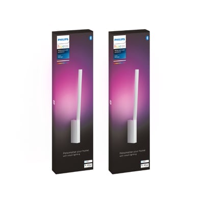 Slank Philips Hue Liane væglampe i hvid. Skab stemning med 16 mio. farver og hvidt lys. Betjen via Bluetooth eller Hue Bridge. Højde: 55,8 cm.