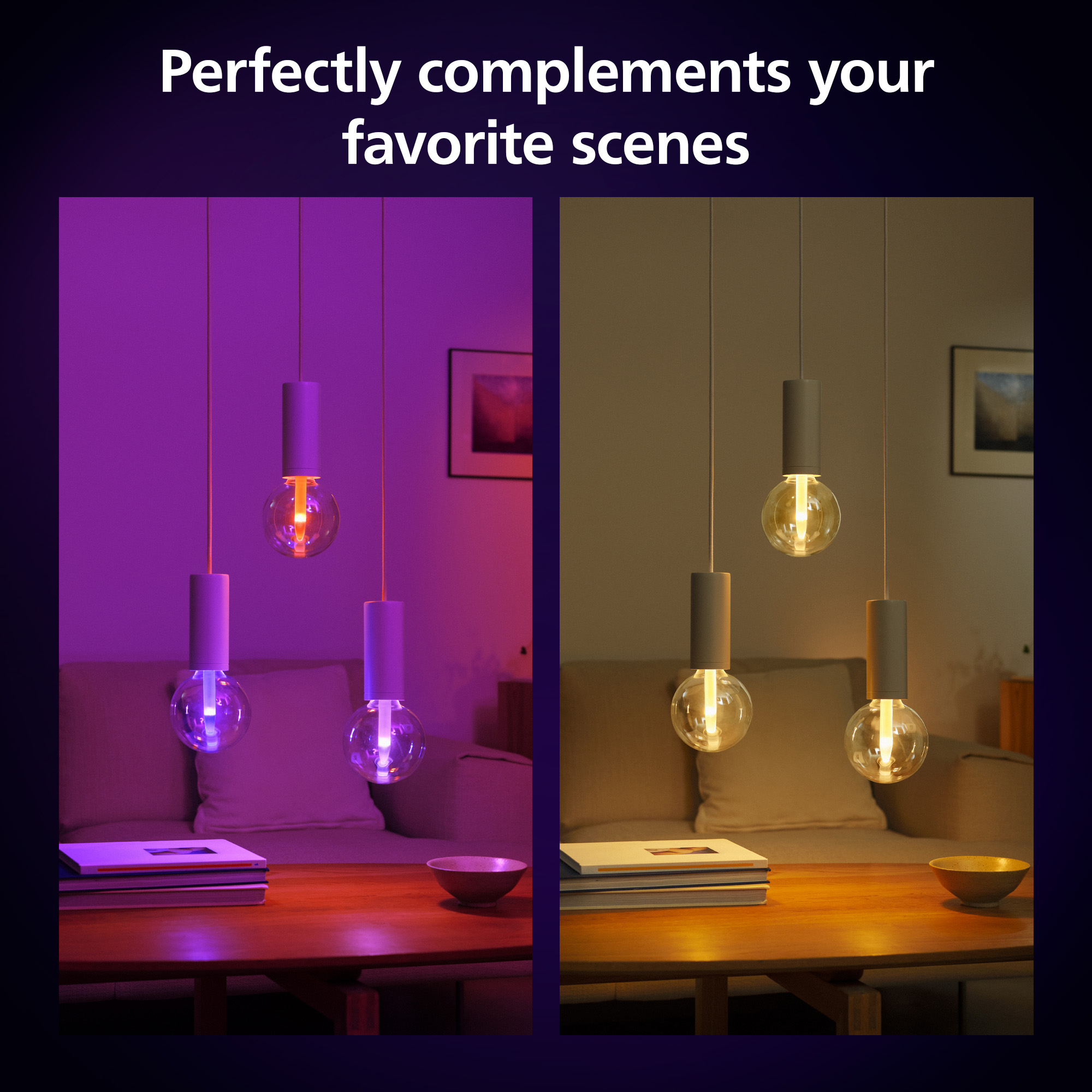 Lys dit hjem op med over 16 millioner farver, og skab den rette stemning til enhver lejlighed. Med et enkelt tryk kan du skabe en festlig atmosfære, forvandle din stue til en hjemmebiograf eller fremhæve din indretning med forskellige farvenuancer.