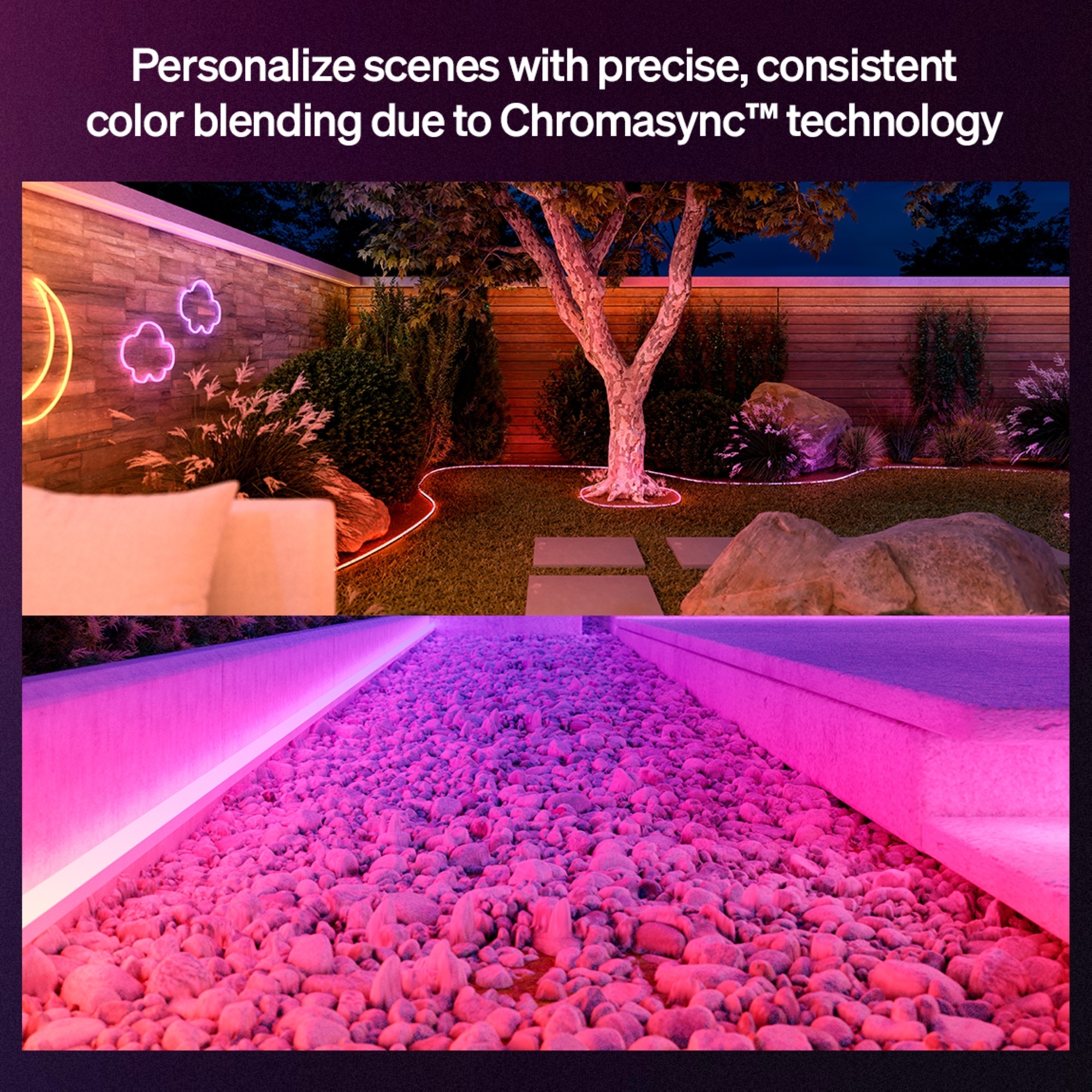 Tilpas belysningen med forskellige scener og dynamiske effekter, og skab den perfekte atmosfære til enhver lejlighed i din have. Installationen er nem og ligetil – tilslut blot strippen til en standard stikkontakt med den inkluderede lavvoltsstrømforsyning, eller integrer den i dit eksisterende lavvoltsystem.
