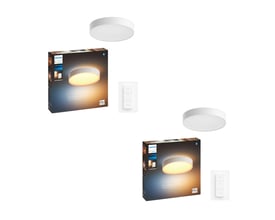 - Trådløs Dimmer switch: Den medfølgende Hue Dimmer switch gør det nemt at tænde/slukke, skifte mellem fire forudindstillede belysningsløsninger og dæmpe lyset til den ønskede lysstyrke. Den er nem at montere og placere, hvor det passer dig.