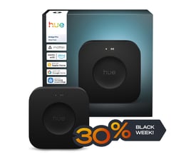 Tilføj en Hue Bridge (sælges separat) til dit system og få adgang til alle Philips Hue funktioner. Med en Hue Bridge kan du tilføje op til 50 intelligente lyskilder og betjene dem overalt i dit hjem. Indstil rutiner, automatiser din belysning og betjen din belysning, når du er ude.
