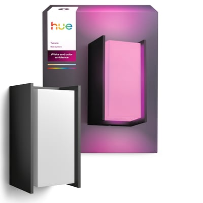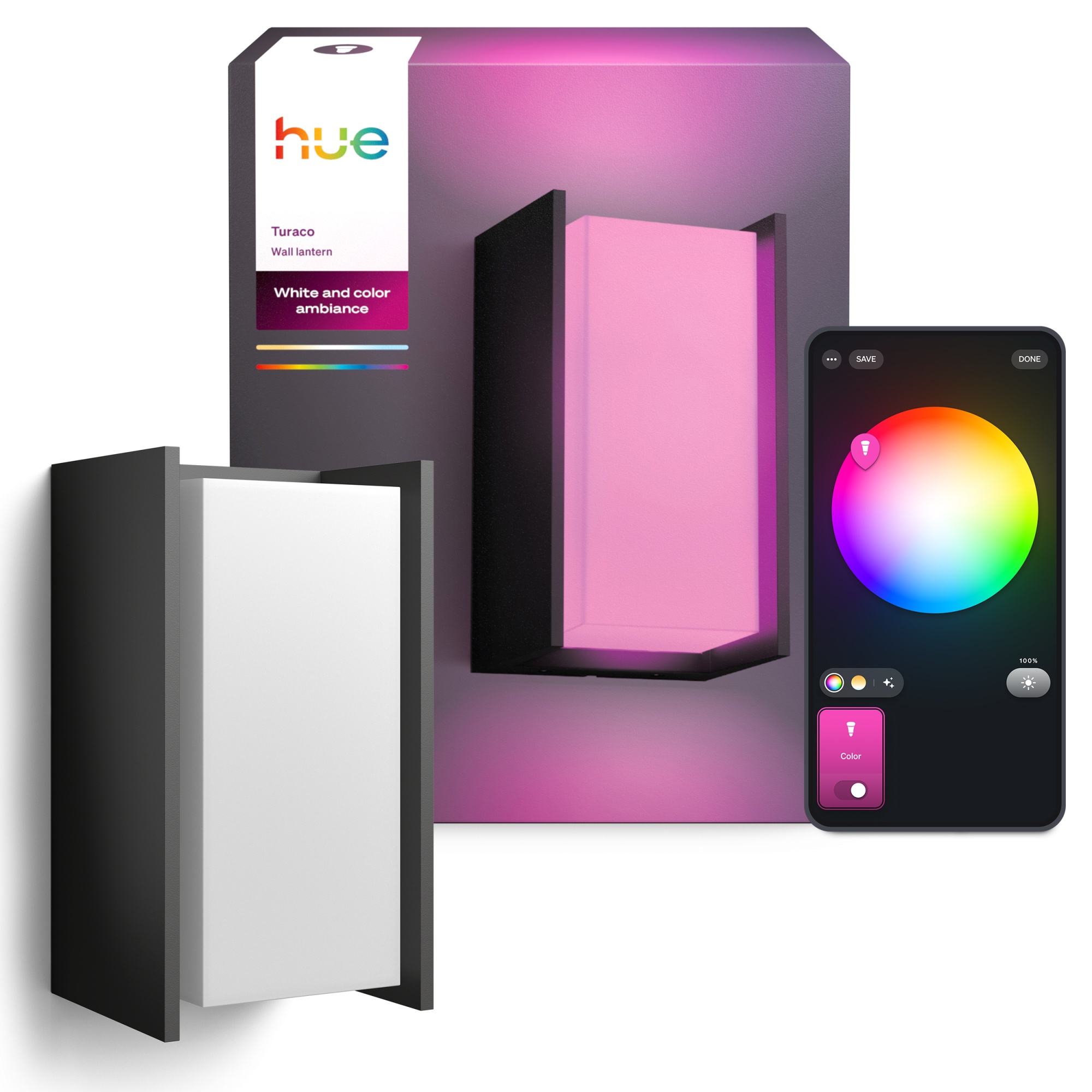 Philips Hue Turaco væglampe i sort med A60 WCA. Skaber stemningsfuld belysning til din facade.