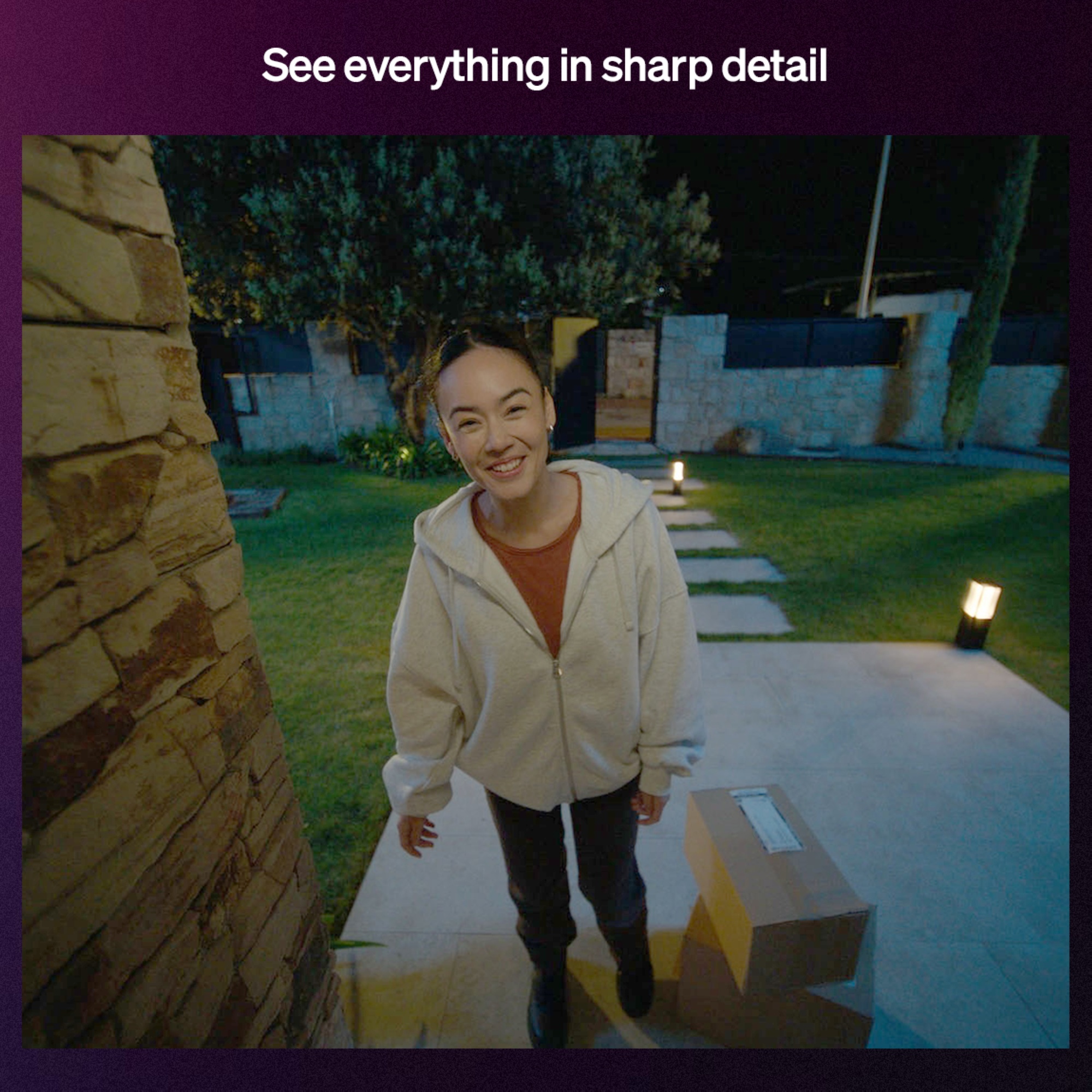 - Få 2K-opløsning og et 180° visningsfelt fra top til tå, ideelt til at overvåge både besøgende og pakker ved din dør.