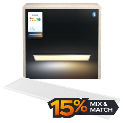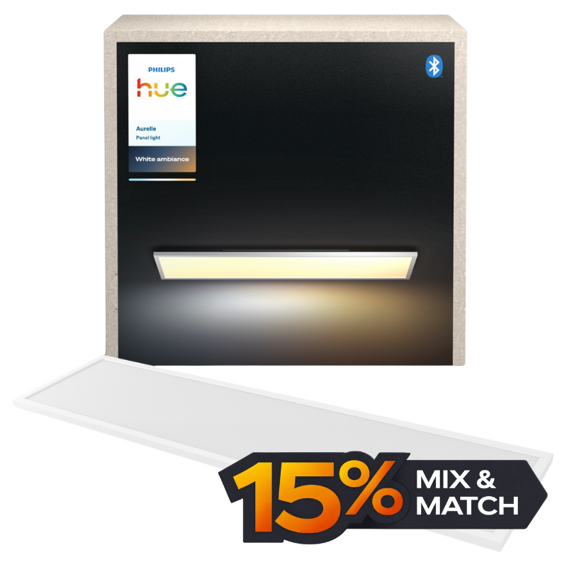 Philips Hue Aurelle er en serie af elegante panellamper med White Ambiance, der giver dig mulighed for at skifte mellem kolde og varme toner af hvidt lys. Dette giver dig fuld kontrol over belysningen i dit rum, så du kan skabe den perfekte atmosfære til enhver lejlighed.