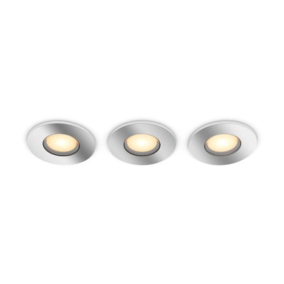 Med disse Philips Hue Adore indbygningsspots kan du nemt tilføje intelligent belysning i alle nuancer af hvidt lys til dit badeværelse. Disse tre spotlamper i krom har et slankt og moderne design, der er specielt udviklet til badeværelsets fugtige miljø.