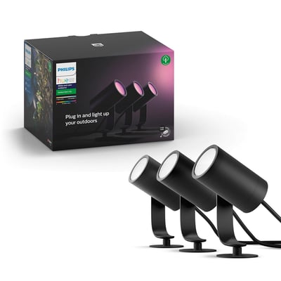 Philips Hue Lily havespot 3-pak giver dig mulighed for at fremhæve dine udendørs områder med millioner af farver og nuancer af hvidt lys. Nem installation og styring via Hue appen.