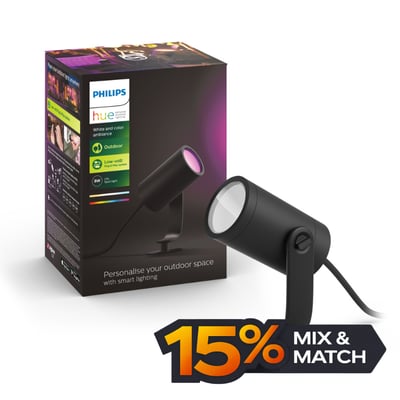 Philips Hue Lily udendørs spot i sort. Nem at dæmpe og styre. Mal dit udendørs område med 16 millioner farver via Hue appen. Kræver Hue Bridge.