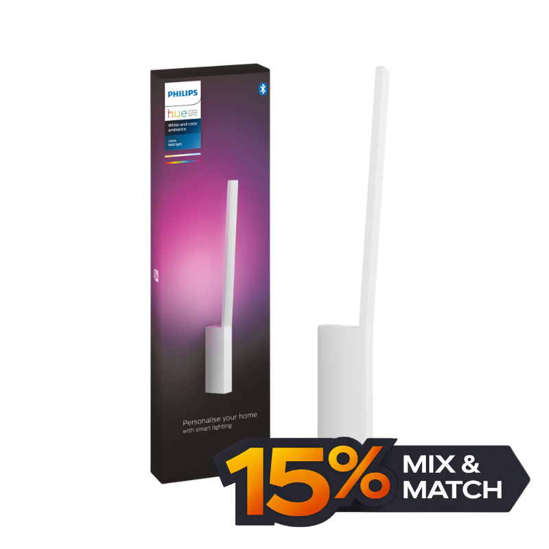 Philips Hue Liane væglampe kombinerer et slankt, moderne design med intelligent belysningsteknologi. Denne lampe giver et indirekte lys, der skaber en behagelig atmosfære i ethvert rum. Du kan nemt tilpasse lyset efter dine behov og stemninger.