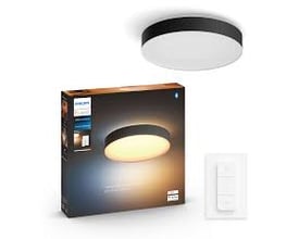 Giv dit badeværelse nyt liv med Philips Hue Xamento M loftlampen. Denne runde loftslampe i sort har et moderne og diskret design, der passer naturligt ind i de fleste boligindretninger. Den afgiver både et dekorativt opadgående lysskær og en bred, jævn nedadgående belysning, der nemt oplyser mellemstore rum med klart lys.