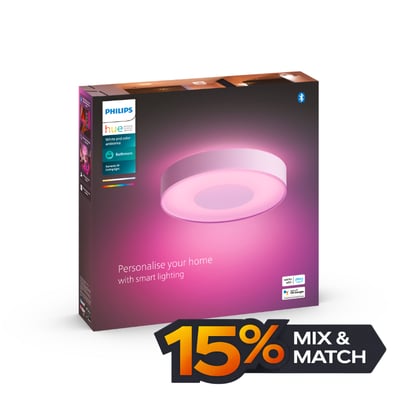 Philips Hue Xamento loftlampe er designet til badeværelset og tilbyder både dekorativt opadgående lys og bred, jævn nedadgående belysning. Med White and Color Ambiance kan du tilpasse lyset med 16 millioner farver og justere styrke, temperatur og tone.