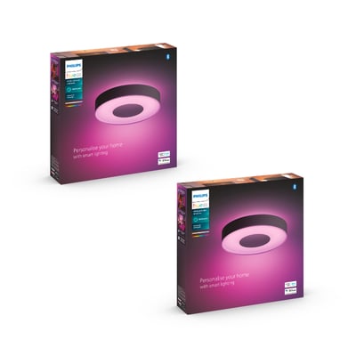 Forny dit badeværelses belysning med Philips Hue Xamento M loftlampen. Denne runde, sorte loftslampe har et stilrent og diskret design, der komplementerer enhver indretning. Lampen udsender et dekorativt lys opad samt en bred og ensartet belysning nedad, der effektivt oplyser mellemstore rum.