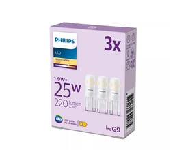 CorePro LED Stift Spot 4,8W, 570 lumen, G9, 2700KProduktdatabladpr. stk. | inkl. moms117,00 kr. CorePro LED Stift Spot 4,8W, 570 lumen, G9, 3000KProduktdatabladpr. stk. | inkl. moms117,00 kr. Philips G9 LED-pære, 2700K, 220lm, 1,9W - 3 pakProduktdatabladpr. stk. | inkl. moms89,00 kr. Philips G9 LED-pære, 2700K, 470lm, 3,7W - 3 pakProduktdatabladpr. stk. | inkl. moms119,00 kr.
