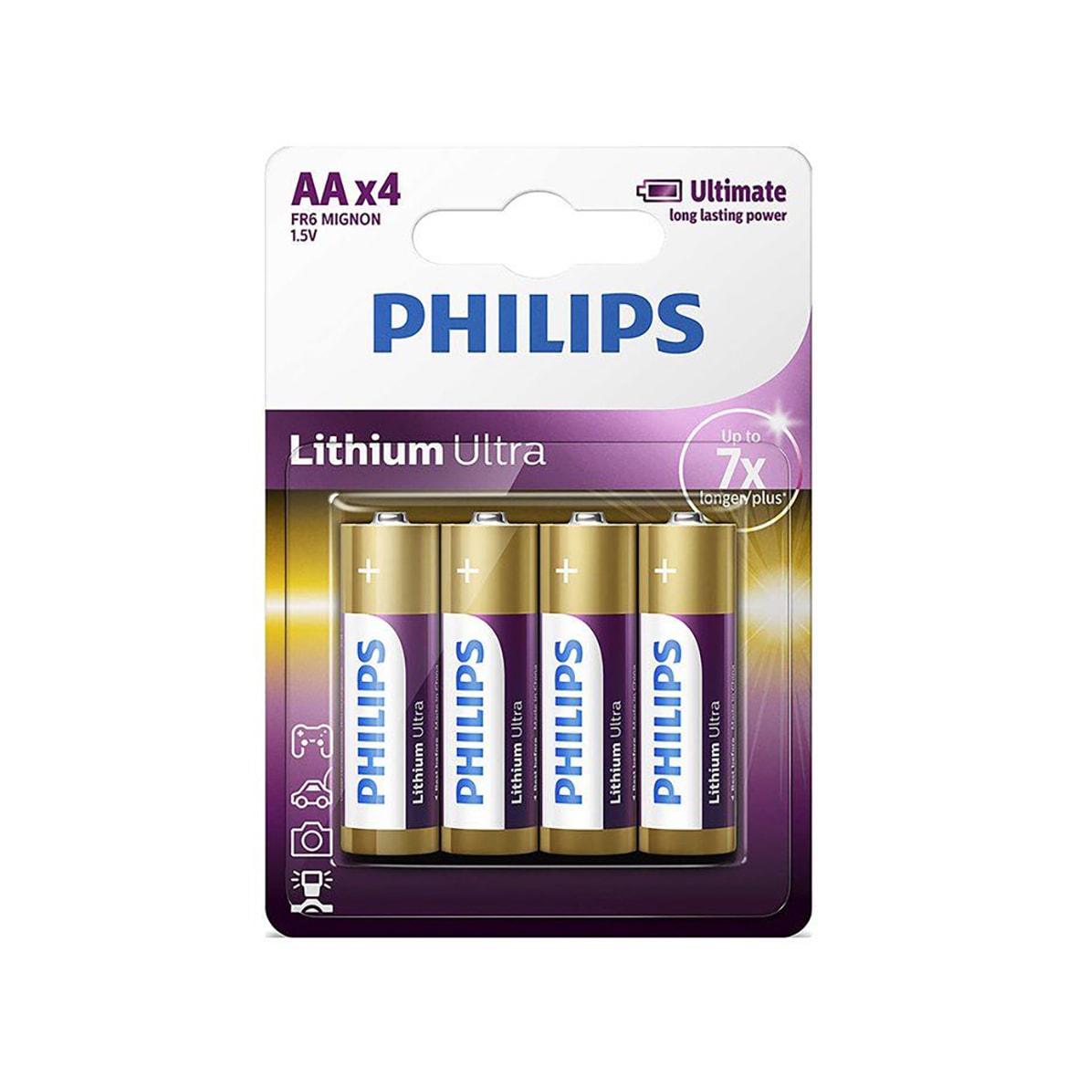 Philips Ultra lithium batterier i AA LR6 størrelse. Pakken indeholder 4 stk. batterier.