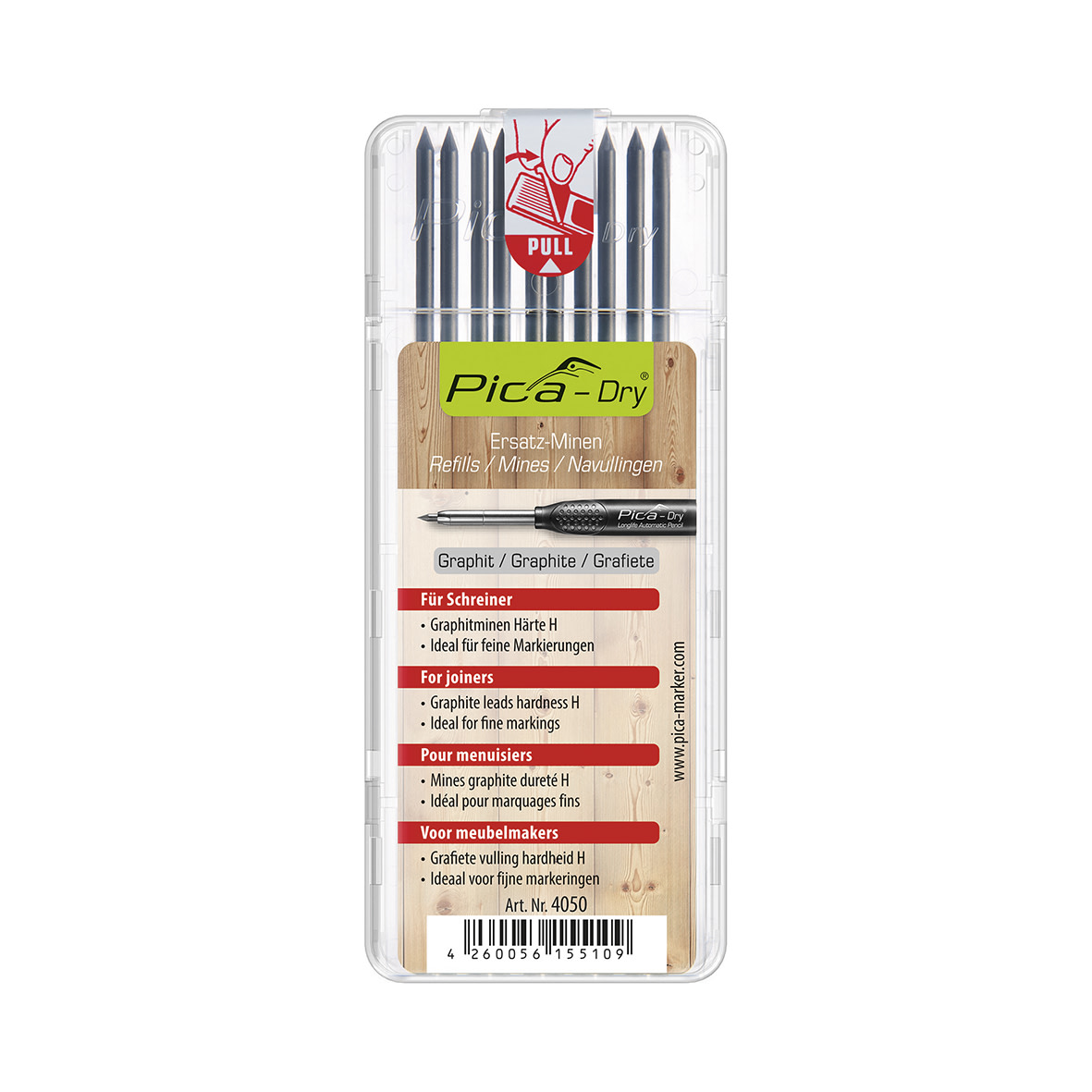 Pica Dry refill til dybhulsblyant med grafit 10H. Pakken indeholder 10 stk.