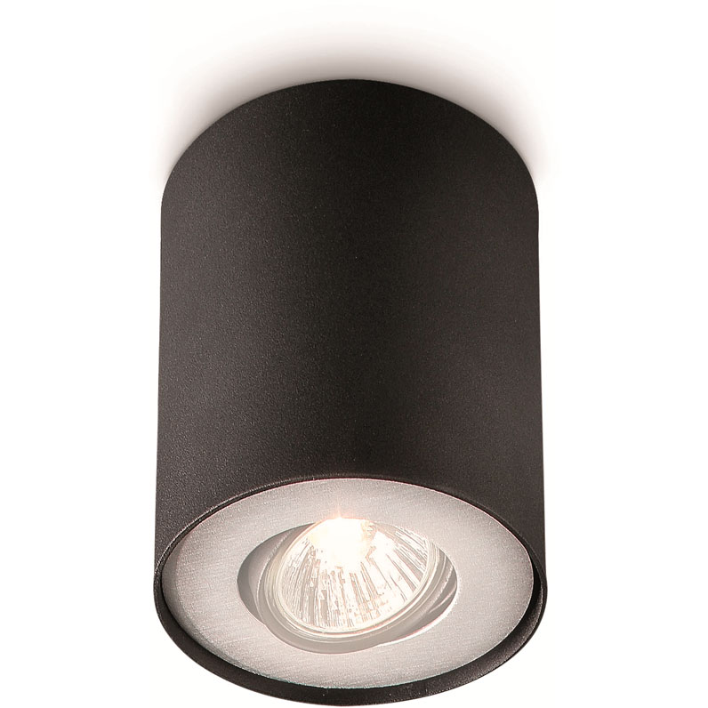 Elegant og funktionelt påbygningsspot i sort aluminium. Perfekt til indendørs brug med plads til 1 GU10 lyskilde.