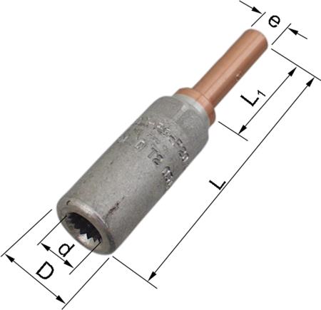 Bimetals pindbolt AKP240 til 240mm² fåtrådige (klasse 2) Al-leder. Rundpresning af Al-leder kræves. Matrice/dornnr.: 20MR/20DR. Al-forbindelsen skal dornpresses to gange.