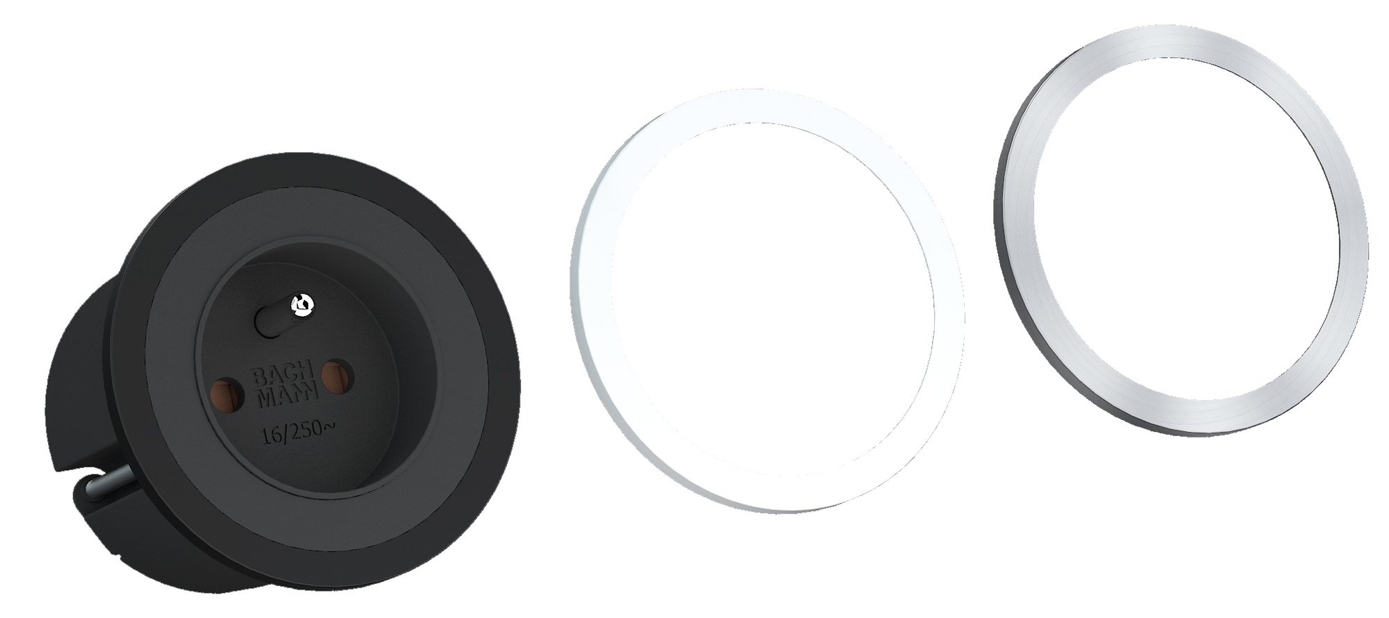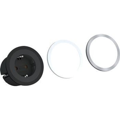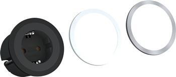 Kompakt og alsidig PIX stikkontakt med 1 Schuko-udtag. Inkluderer udskiftelige ringe i sort, hvid og stål look.