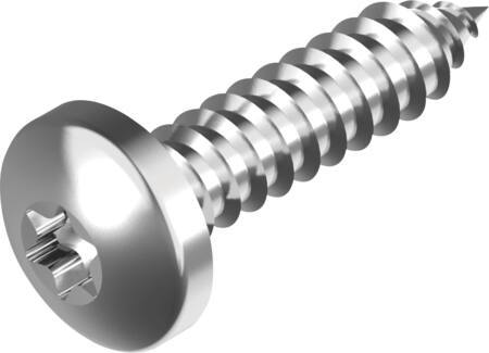 Pladeskrue med panhoved og TX kærv. Rustfri A2. Iht. DIN 7981.