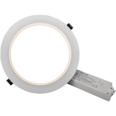 Energieffektiv LED downlight med lav indbygningshøjde. Vælg farvetemperatur via DIP-switch. Perfekt til større lokaler.