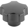 Spændehåndtag størrelse: 3 - M10x30, plast, sort/grå RAL 7021, materiale: stål - udvendig gevind. Håndtag af glasfiberforstærket plast og støbt zink fortandet ring.
