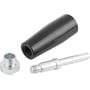 Spændehåndtag størrelse: 4 - M10x40, plast, sort/grå RAL 7021, materiale: stål med udvendigt gevind og håndtag i glasfiberforstærket plast.