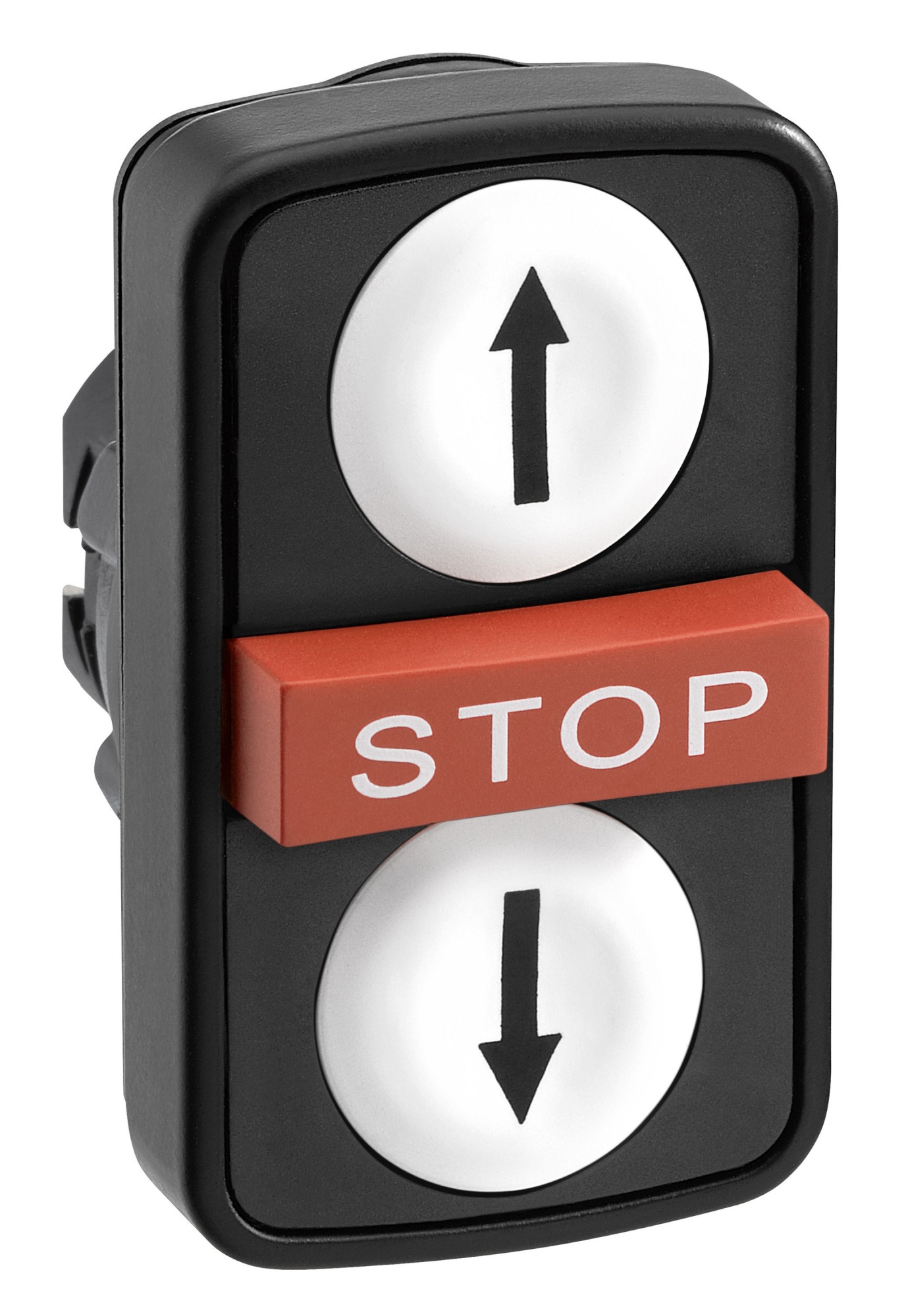Harmony XB5 trippel trykknaphoved i plast med pil, stop og pil. Ø 22 mm.