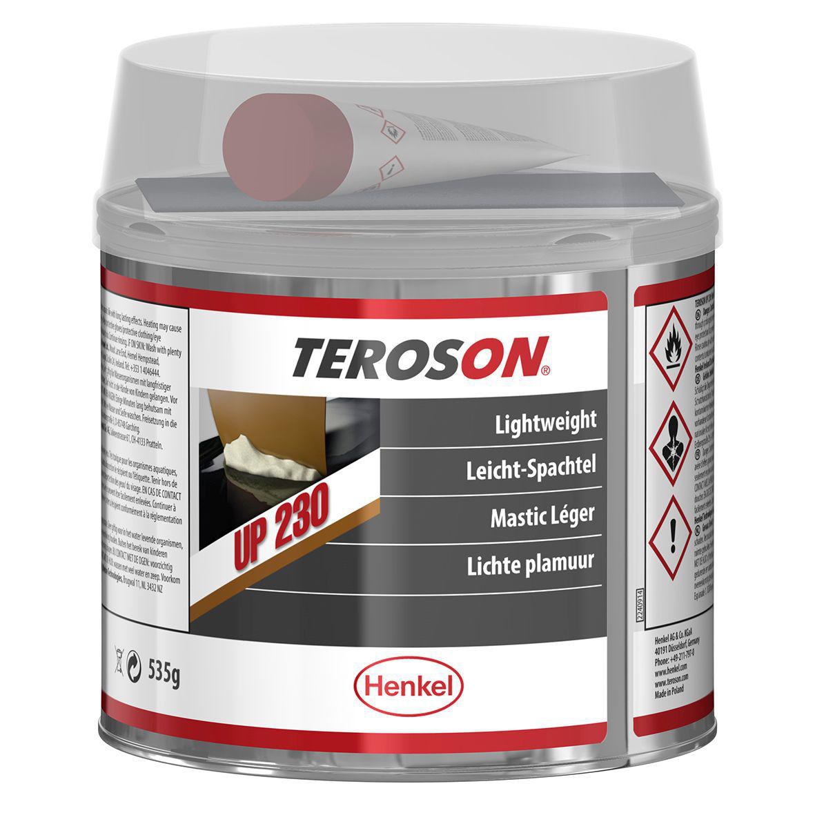 TEROSON UP 230 er en letvægts karosserispartelmasse. Nem at slibe og anvendes til reparation af buler, ridser og ujævnheder.