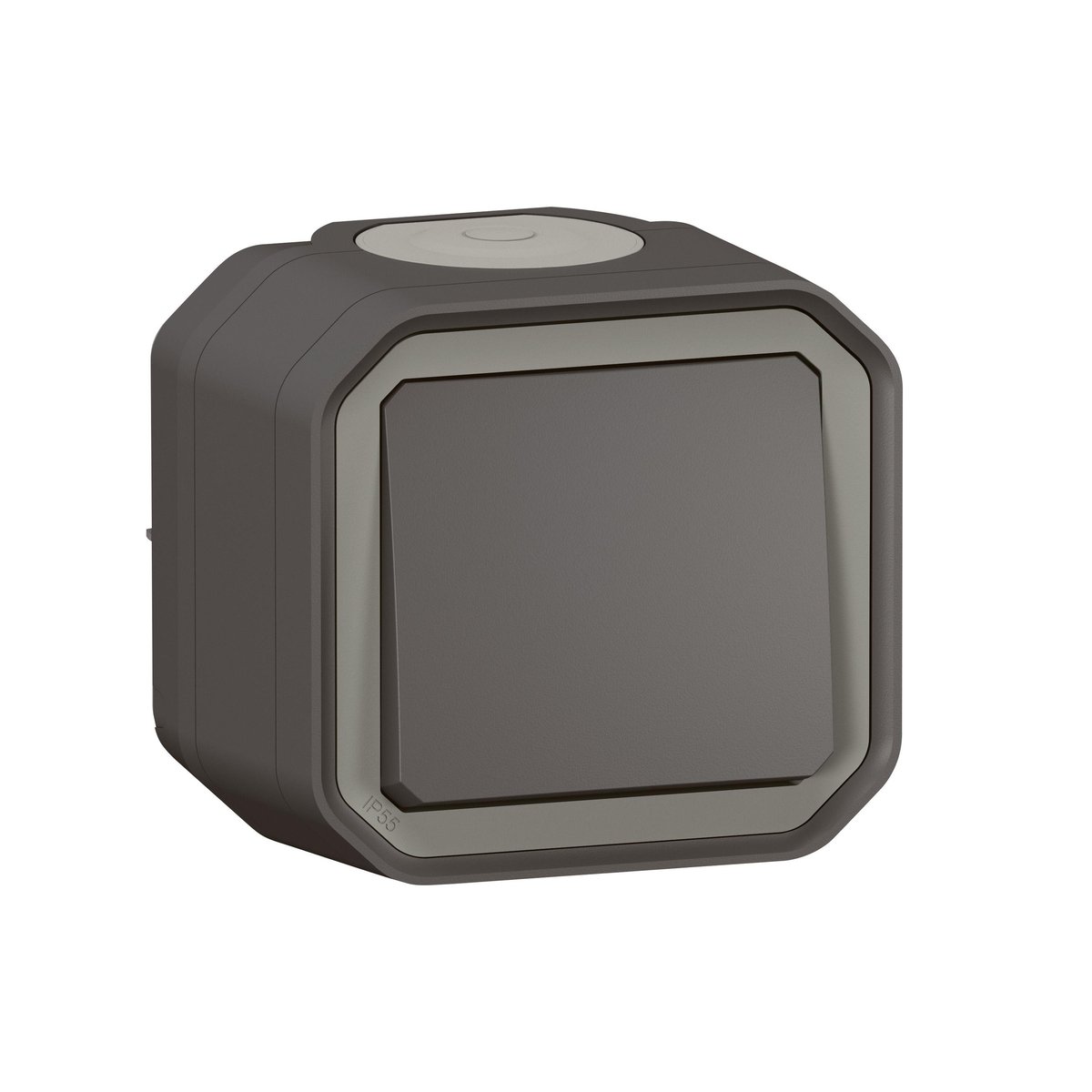 PLEXO55 komplet korrespondanceafbryder med underlag. 10A, IP55, 2 modul, antracit.