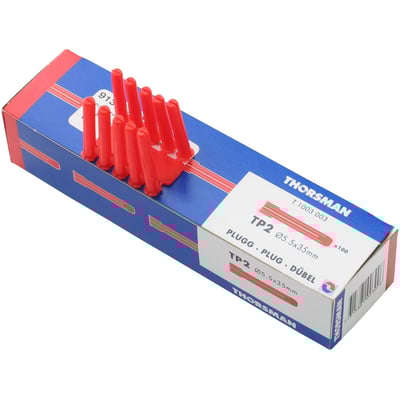 Disse røde plugs (TP2-100) fra Schneider Electric er ideelle til de fleste montager, hvor tværkraften er størst. Ved højere udtrækskraft eller høj varme (f.eks. ved loftarmaturer) anbefales metalplugs.
