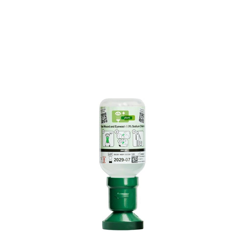 Denne lille og handy flaske indeholder 0,9% steril natriumklorid og er designet til hurtig og effektiv øjenskylning. Den er let at medbringe i førstehjælpskassen, værktøjskassen eller lignende steder, hvor hurtig adgang til øjenskylning kan være nødvendig.