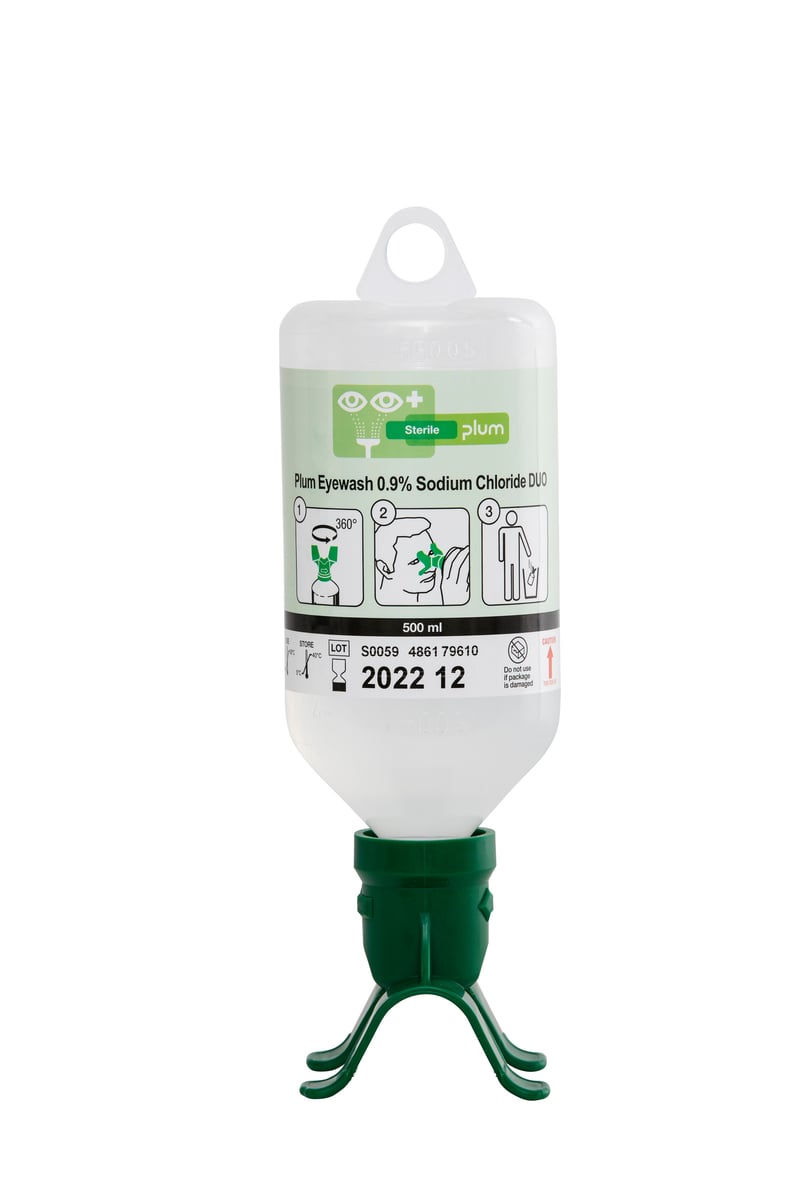 Plum Eyewash DUO er en ergonomisk designet flaske, der indeholder 500 ml steril natriumklorid (0,9%). Den er ideel til hurtig og effektiv øjenskylning, når du har fået snavs eller støv i øjet.
