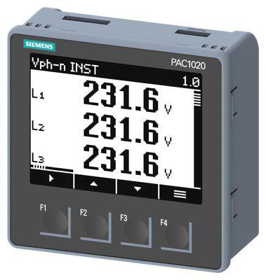 SENTRON PAC1020 er en power monitoring device (PMD) i størrelsen 96x96 mm, der er designet til panelmontering. Den er ideel til måling af strømforbrug i både enfasede og trefasede systemer, hvilket gør den anvendelig i industrianlæg, erhvervsbygninger, kontorer og boligblokke.