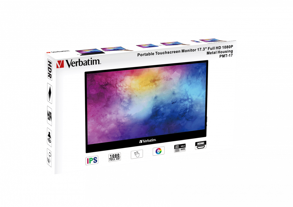 Verbatim PMT-17 bærbar skærm med 17,3" Full HD IPS-panel og hurtig 6 ms responstid. Elegant metalkabinet.