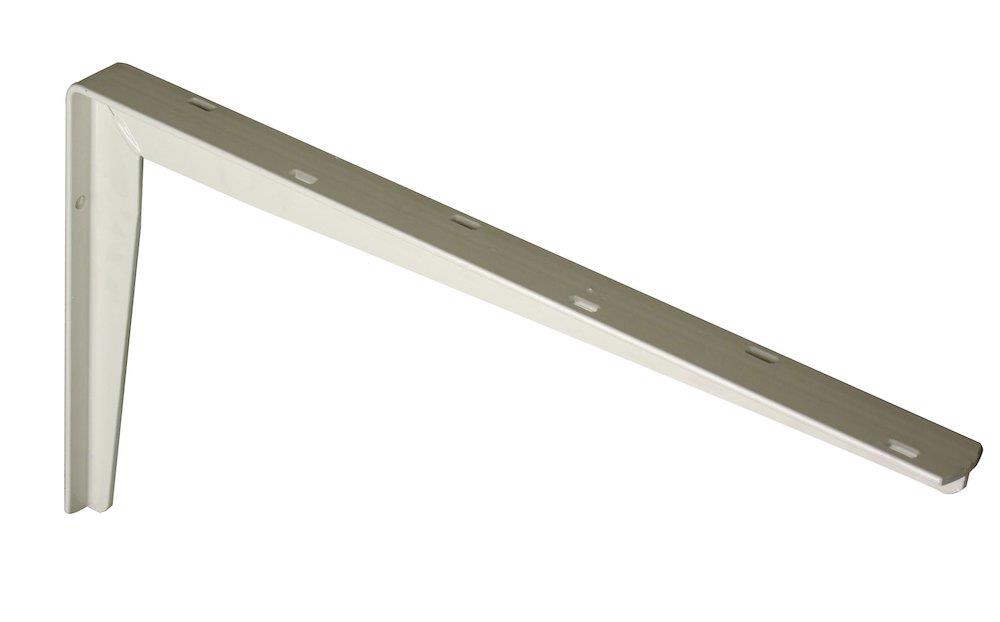 Hyldeknægt i stål med hvid pulverlakering. Mål: 300x550mm. Max belastning 250kg. Huller for skruer Ø 5,0mm og M8.