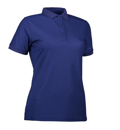 GEYSER poloshirt i navy, str. L. Fremstillet i svedtransporterende materiale med bomulds-touch. Strikket krave og ærmer med ribkant.