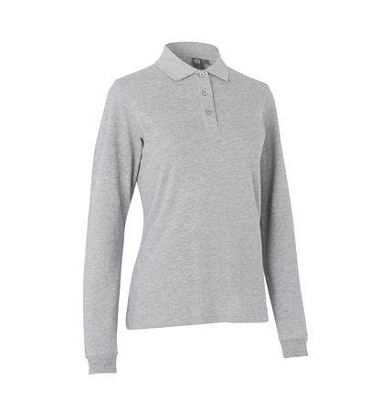 Denne tidløse poloshirt til damer er fremstillet i en komfortabel pique kvalitet med indbygget stretch, der sikrer god pasform og bevægelsesfrihed. Den har lange ærmer med elastisk ribafslutning, der giver et pænt look og holder ærmerne på plads.