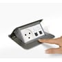 Brugervenlig Pop-up boks fra Legrand til hurtig tilslutning af mobilt udstyr. Nem at montere i gulv, møbler og bordplader. Til Legrand Mosaic installationsmateriel.