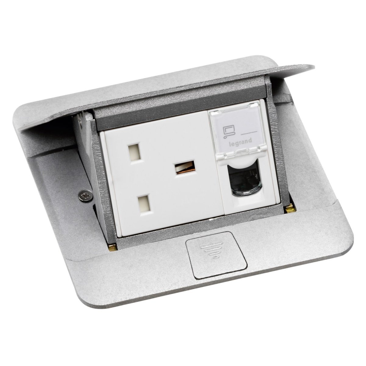 Planforsænket Popop til arbejdsstationer og møderum. Kan installeres i trægulve, betongulve og direkte i møbler (borde, mødeborde osv.). Legrands Pop-Op boks giver en god brugervenlig samt hurtig tilslutning af mobilt udstyr som pc'er, mobiltelefoner, tablets, lyd og video-systemer.