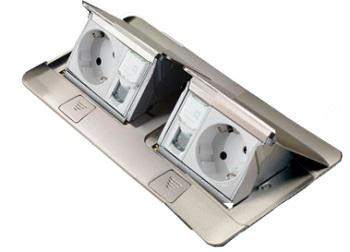 Pop-up er planforsænket og ideel til arbejdsstationer og mødelokaler. Den kan installeres direkte i møbler som borde og mødeborde.