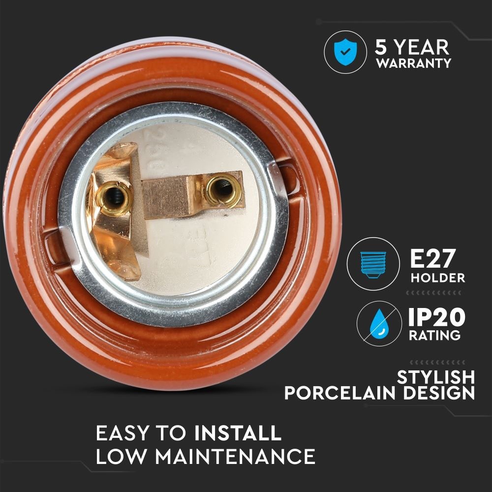Opgrader din belysning med denne stilfulde porcelæns lampesokkel E27 fra V-TAC. Den brune farve giver et elegant og tidløst udtryk, der passer perfekt ind i enhver indretning.