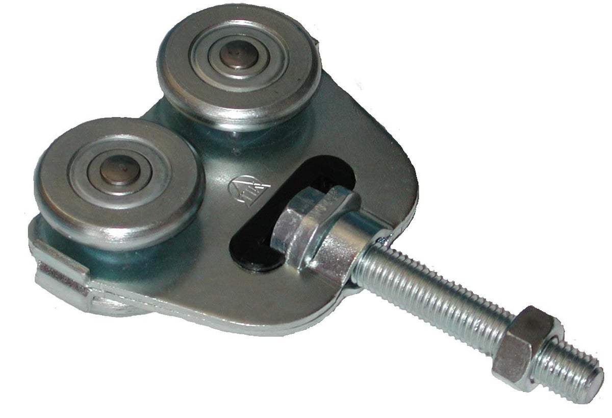 Dobbelt skydeportrulle med 12 mm drejbar bolt. Fremstillet i rustfrit, syrefast stål. Hjul Ø42 mm. Maksimal belastning på 300 kg.