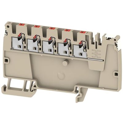 Potentiale distributionsklemme, PUSH IN, 2.5, 800 V, 24 A, med 5 tilslutninger, 1 pol, TS 35, mørk beige, rød betjening.