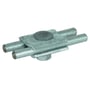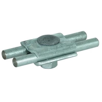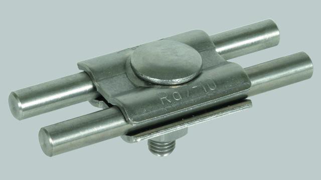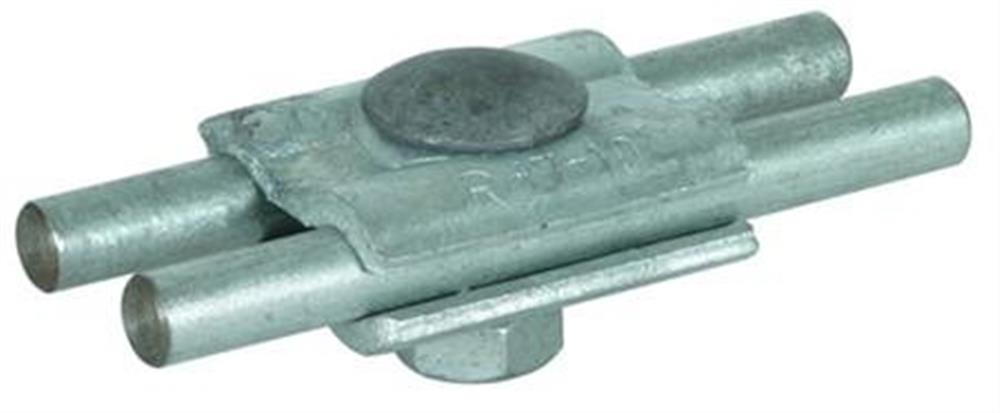 Galvaniseret parallelklemme fra Desitek til potentialudligning. For samling af to ledere med en diameter på 7-10 mm.