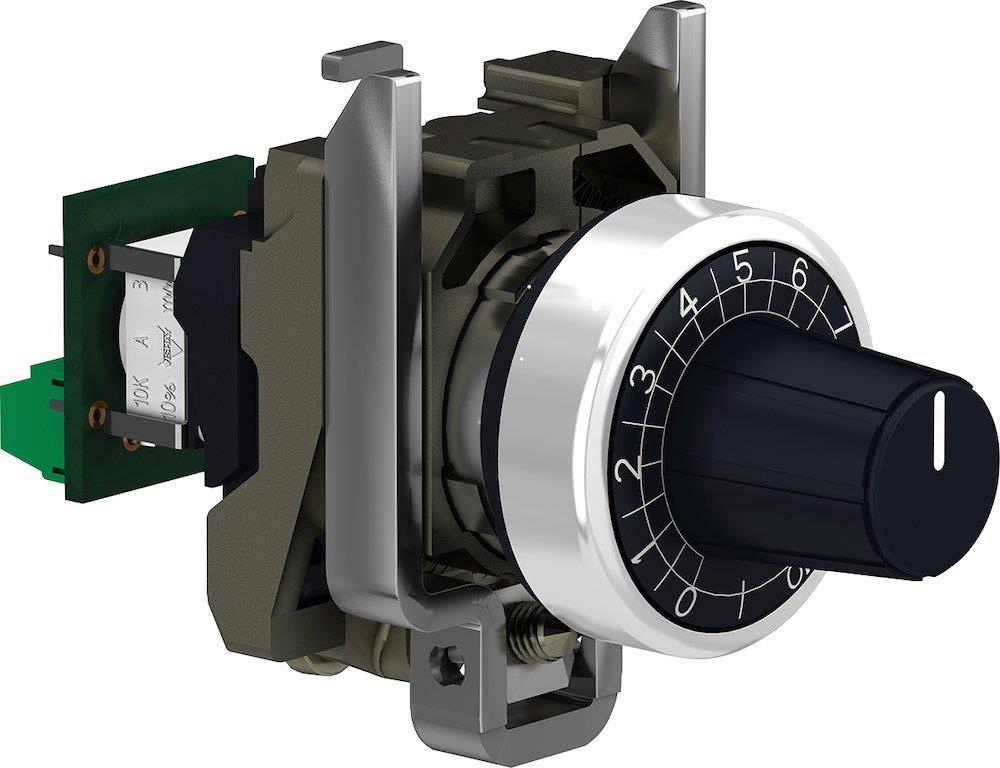 Dette komplette potentiometer er designet til Harmony trykknapserien og fås i både metal og plast. Potentiometrene har en nøjagtighed på +/- 10% og er lineære fra minimum til maksimumværdien.