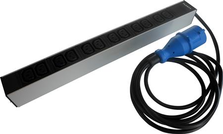 19 Powerpanel 12x230V med apparatstik (C13) leveres med CEE-stik og er designet til 16A belastning.