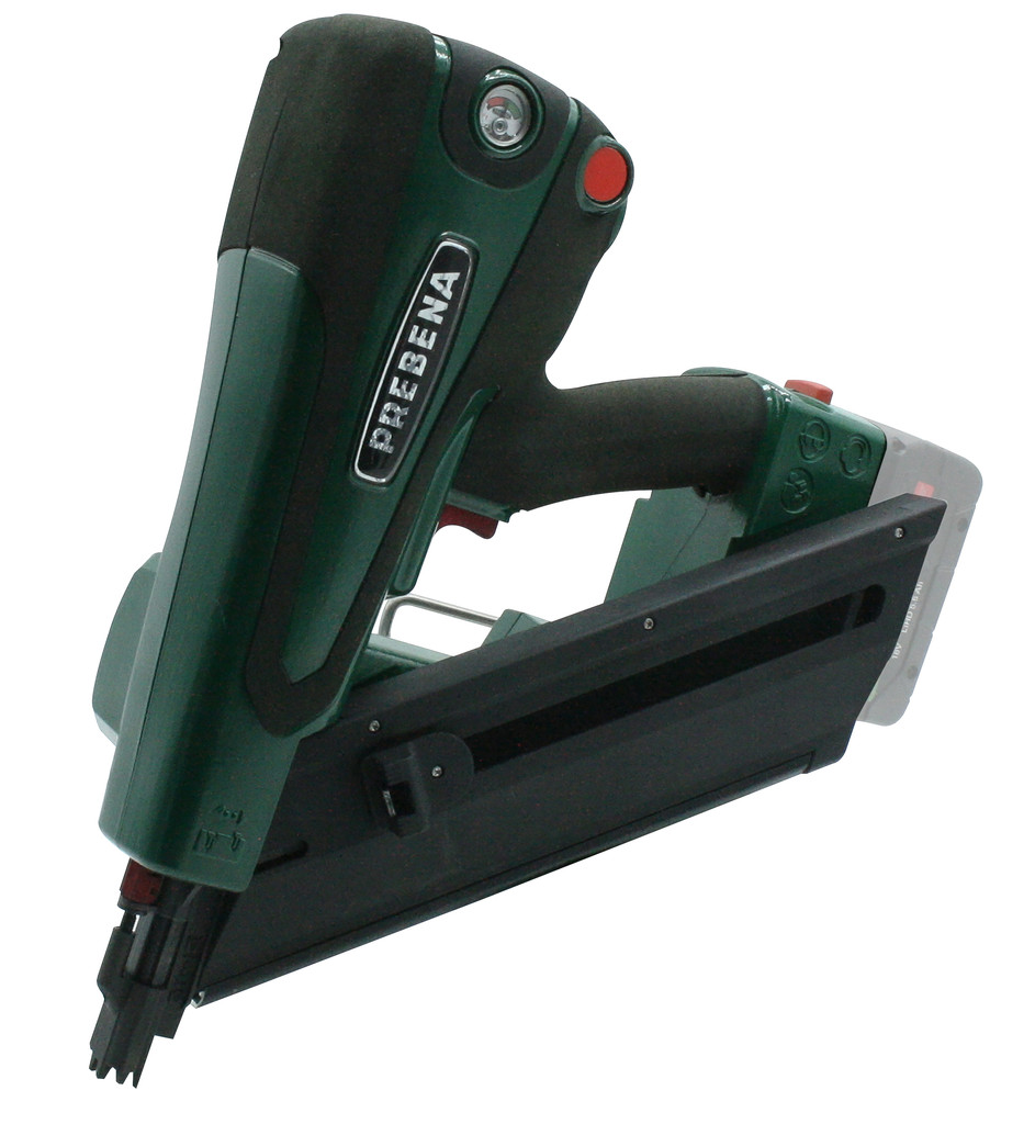 18V akku sømpistol fra Prebena med justerbar slagdybde. Bruger søm med en længde på 65-100 mm og en tykkelse på 2,8 mm. Leveres uden batteri og lader.